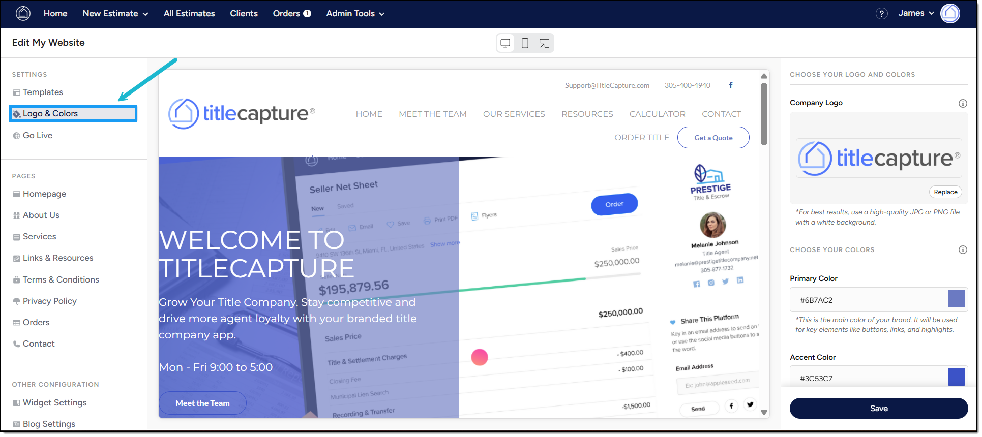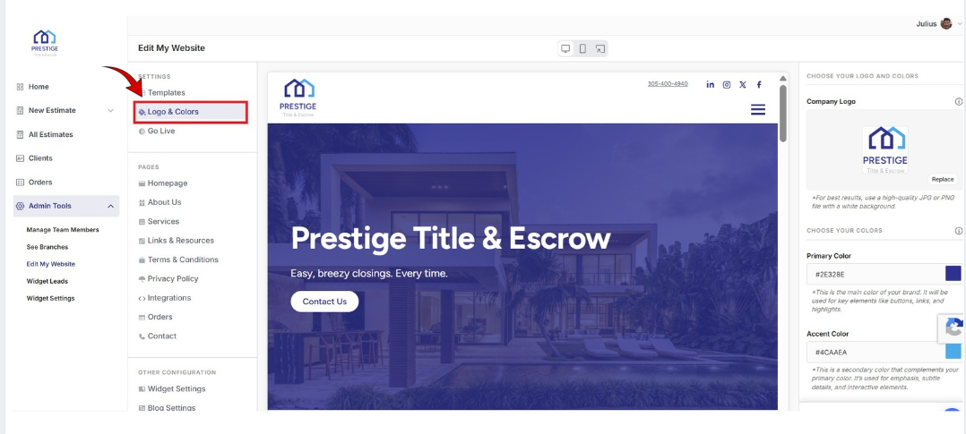 From the left-hand menu, click Logo & Colors.