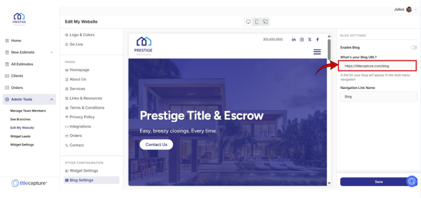 In the What’s your Blog URL? field, review the blog link provided. This is the direct URL where visitors can access your blog. You may update this URL if you want to connect or redirect to a different blog.