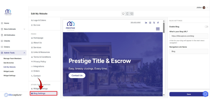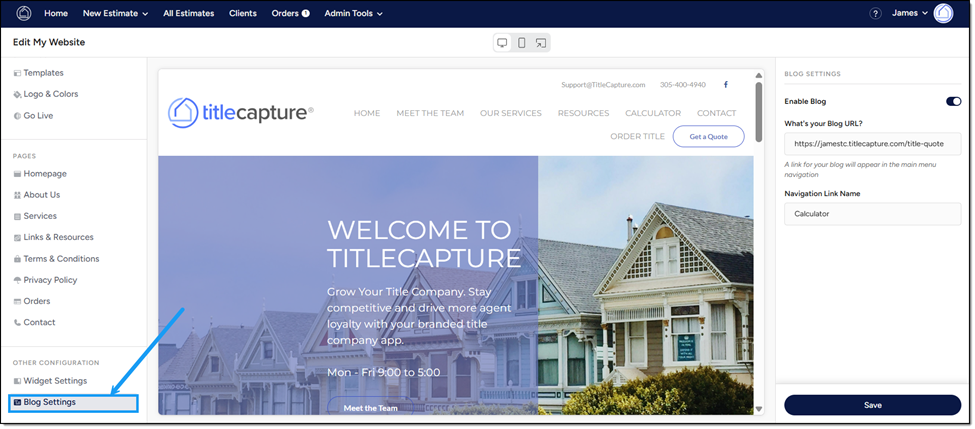 From the left-hand menu, under Other Configuration, click Blog Settings.