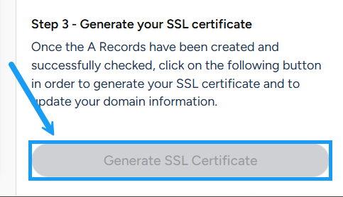 Once your A Records have been successfully verified, click Generate SSL Certificate.