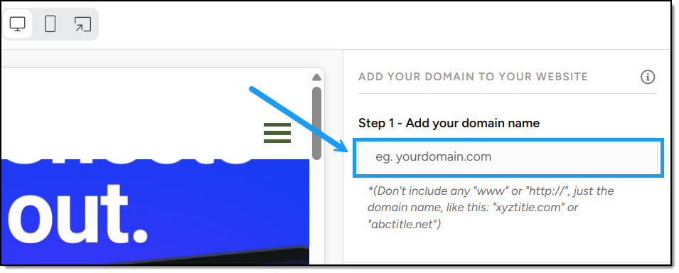 Enter your root domain in the field on the right-hand side (for example, yourdomain.com).