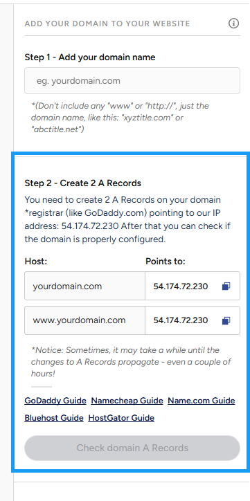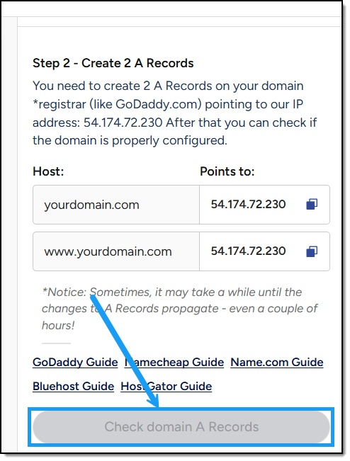 Once your A Records have fully propagated, the Check domain A Records button will become enabled.